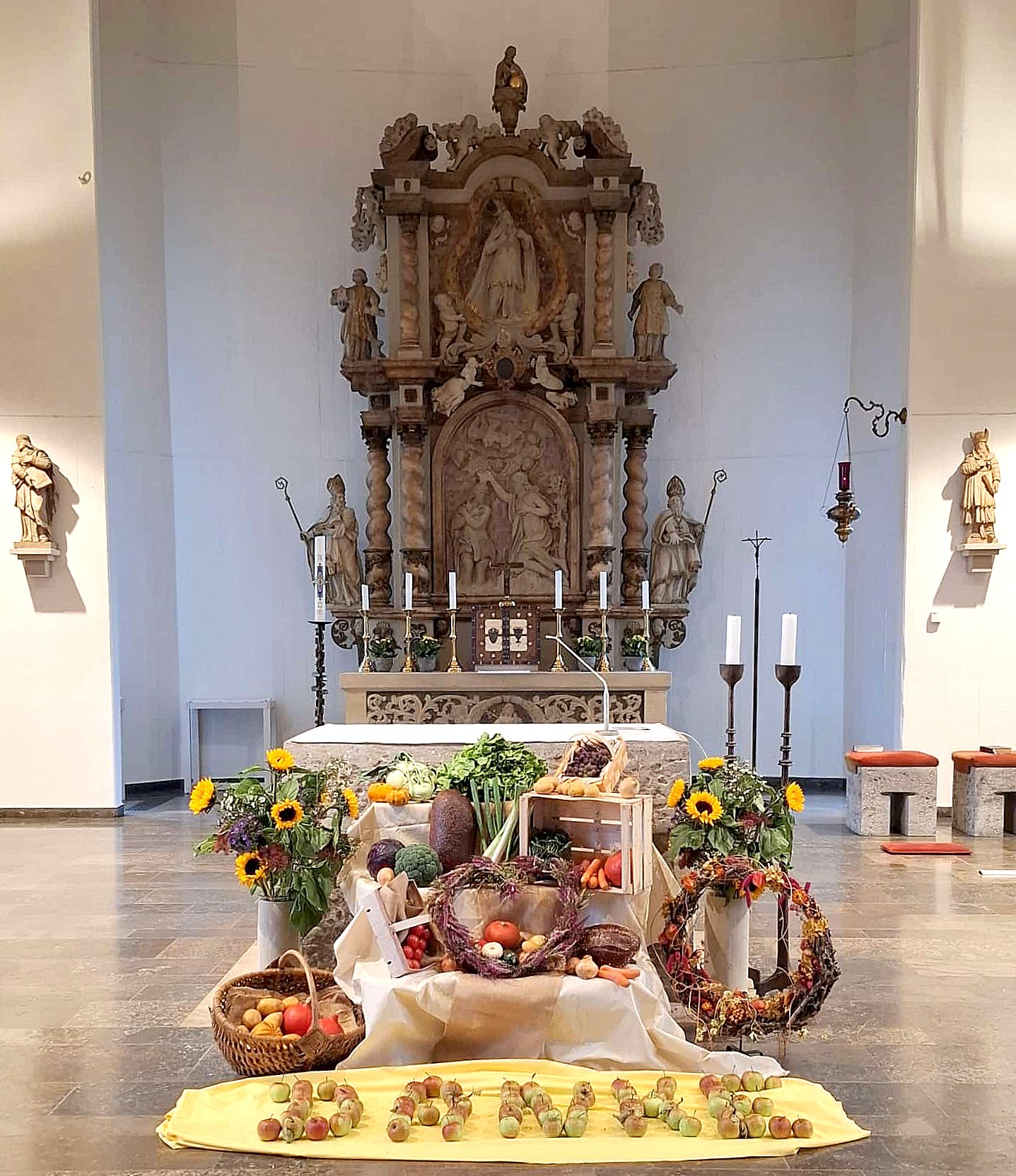 Am morgigen Sonntag feiern wir wieder das Erntedankfest, zu diesem Anlass haben fleißige Hände den Altarraum sehr reichhaltig dekoriert, vielen Dank euch.