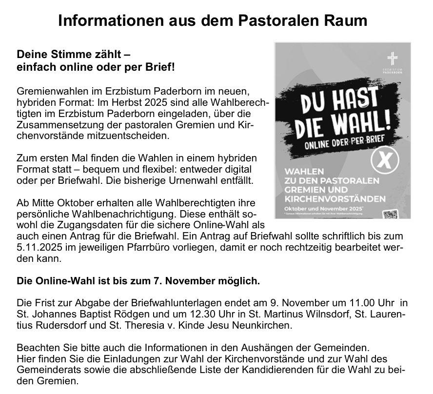 hier findet Ihr / finden Sie regelmäßig aktuelle Information aus der Pfarrei Wilnsdorf / Wilgersdorf.